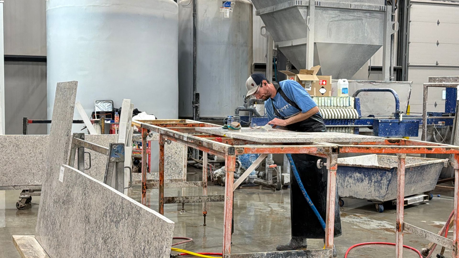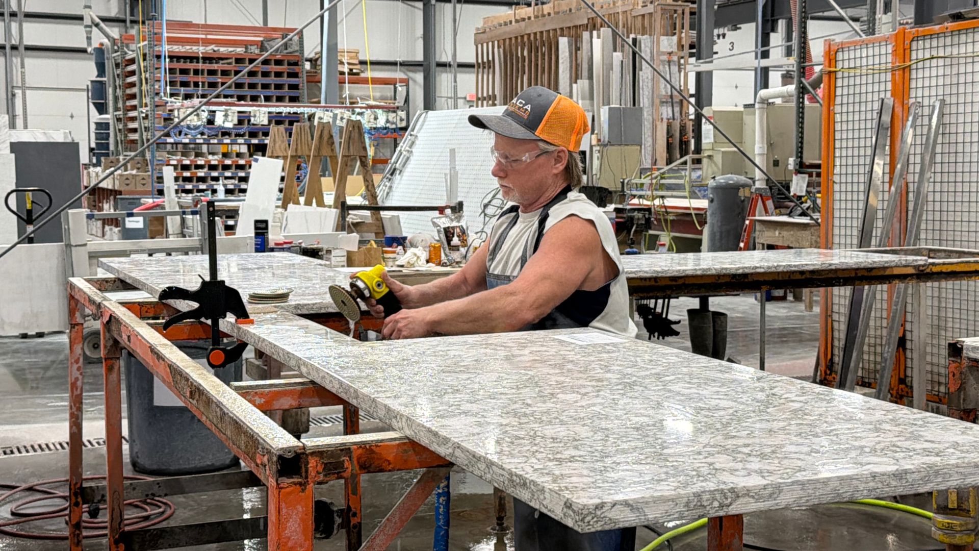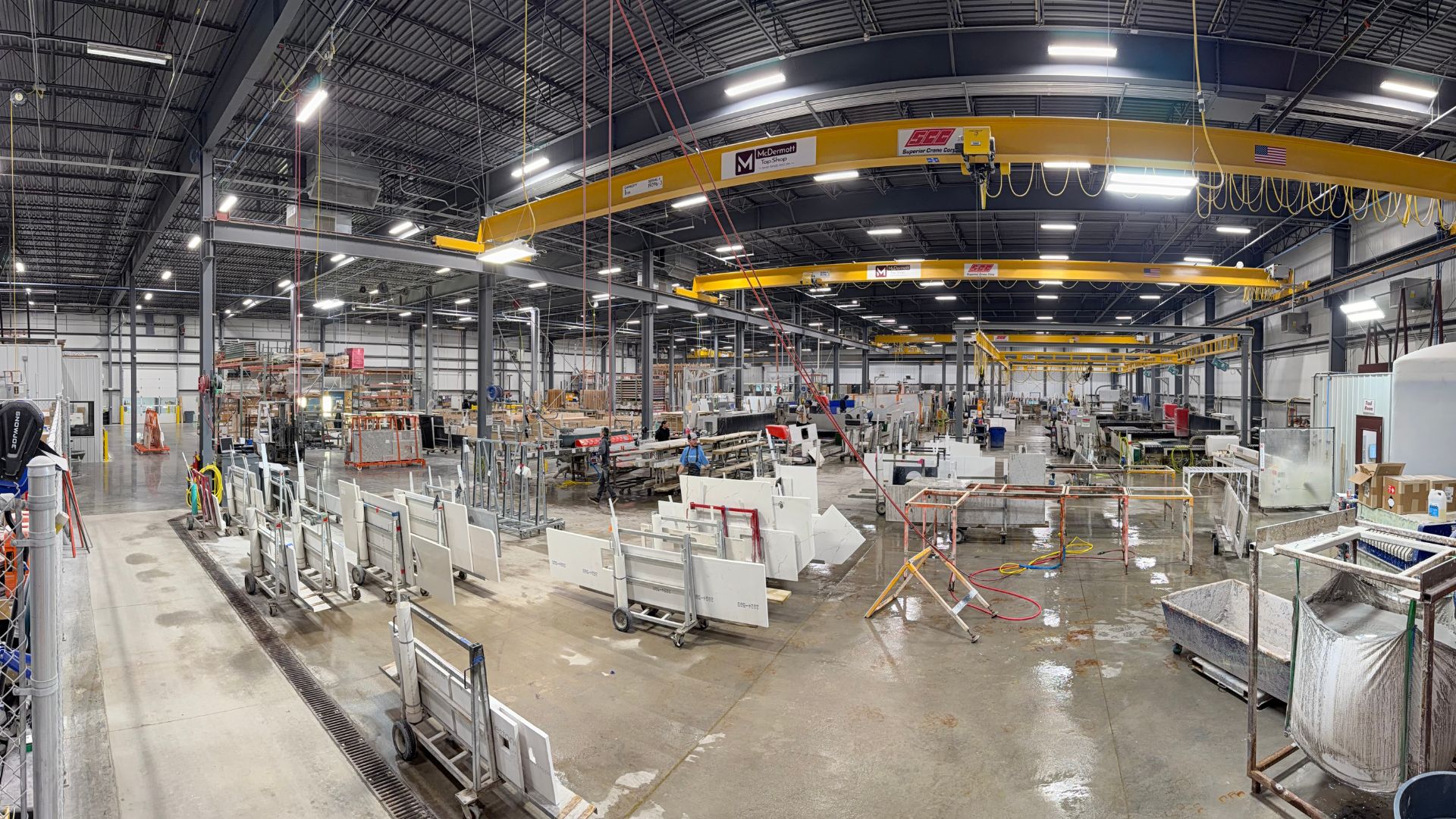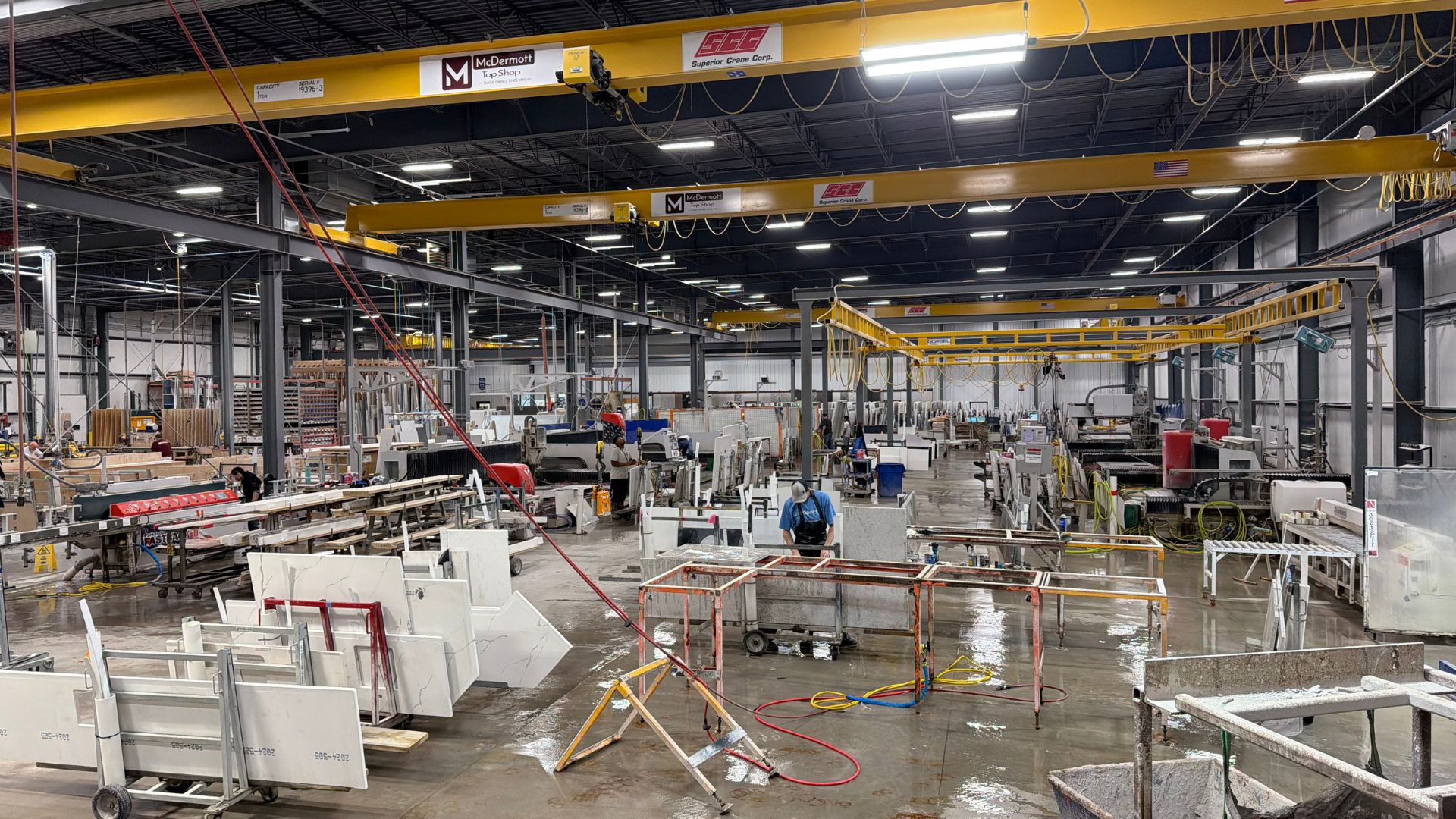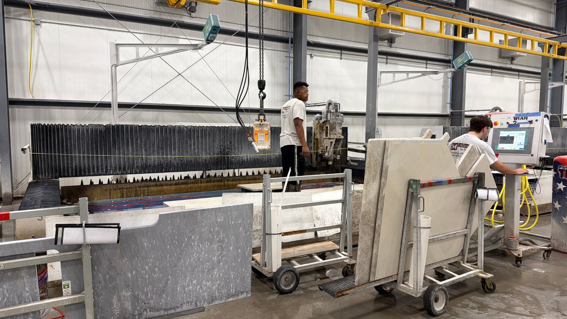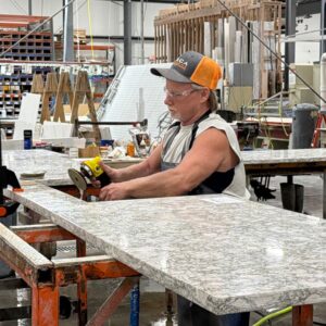At McDermott Top Shop, safety isn’t a policy — it’s a core value. From our climate-controlled, dust-monitored facility to our 100% wet-cut fabrication process, every step is designed to protect our team, our partners, and the quality of the product we deliver.
